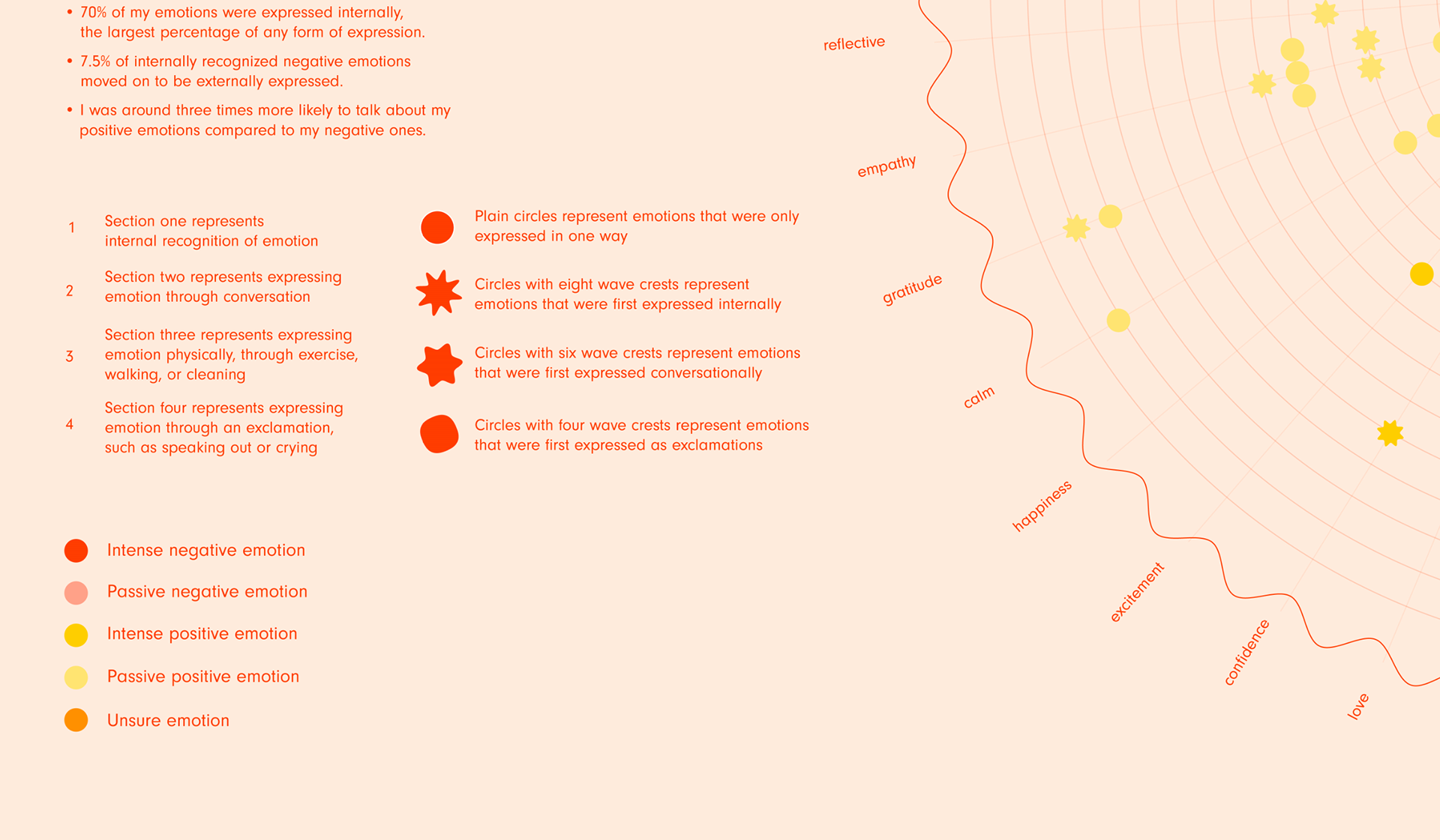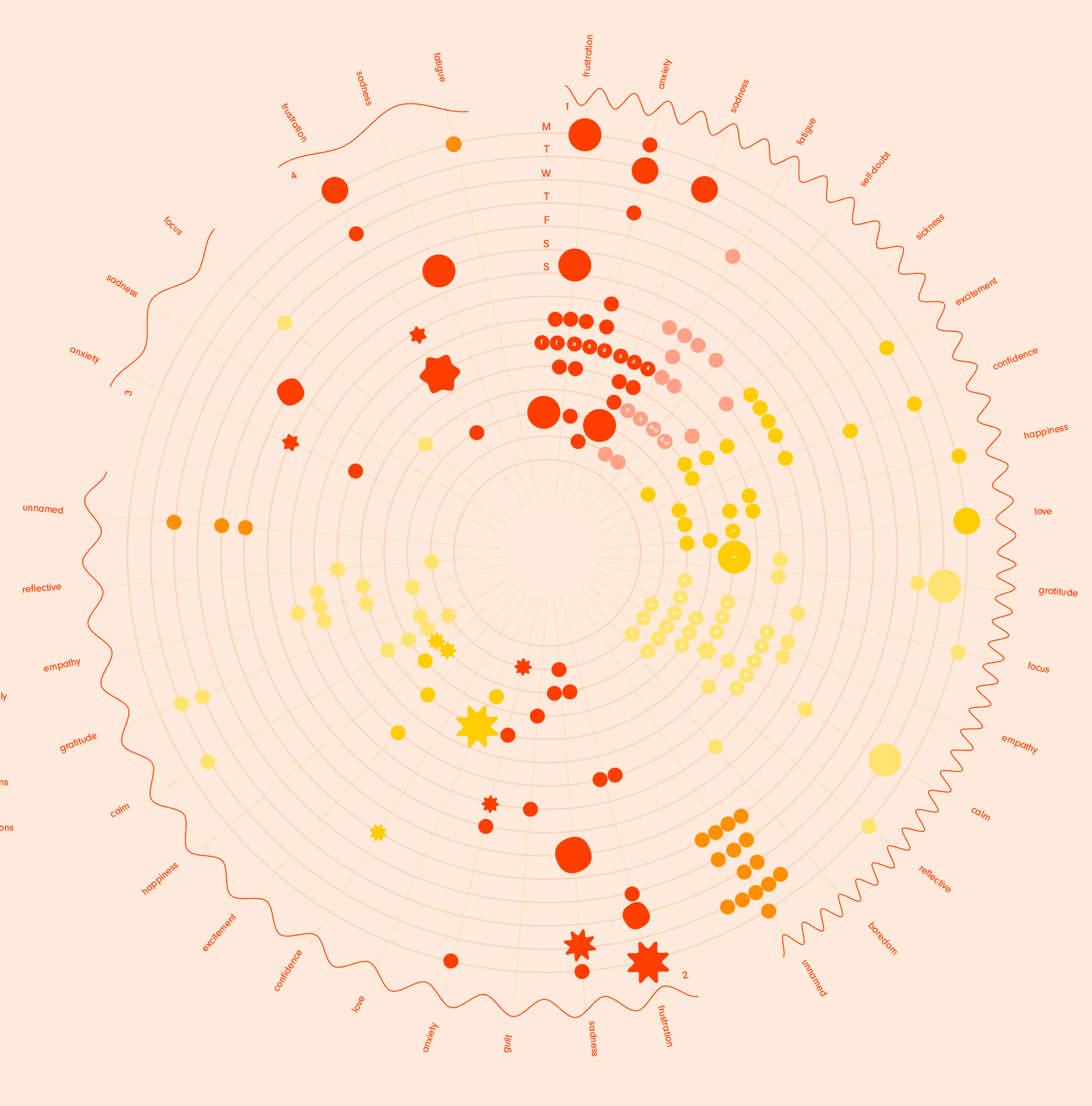 Data Mapping project assigned by Fish McGill in Information Architecture I at Massachusetts College of Art & Design in Fall 2019. I was assigned to track my day to day emotions and then make a map of the data. Project is non-commercial.